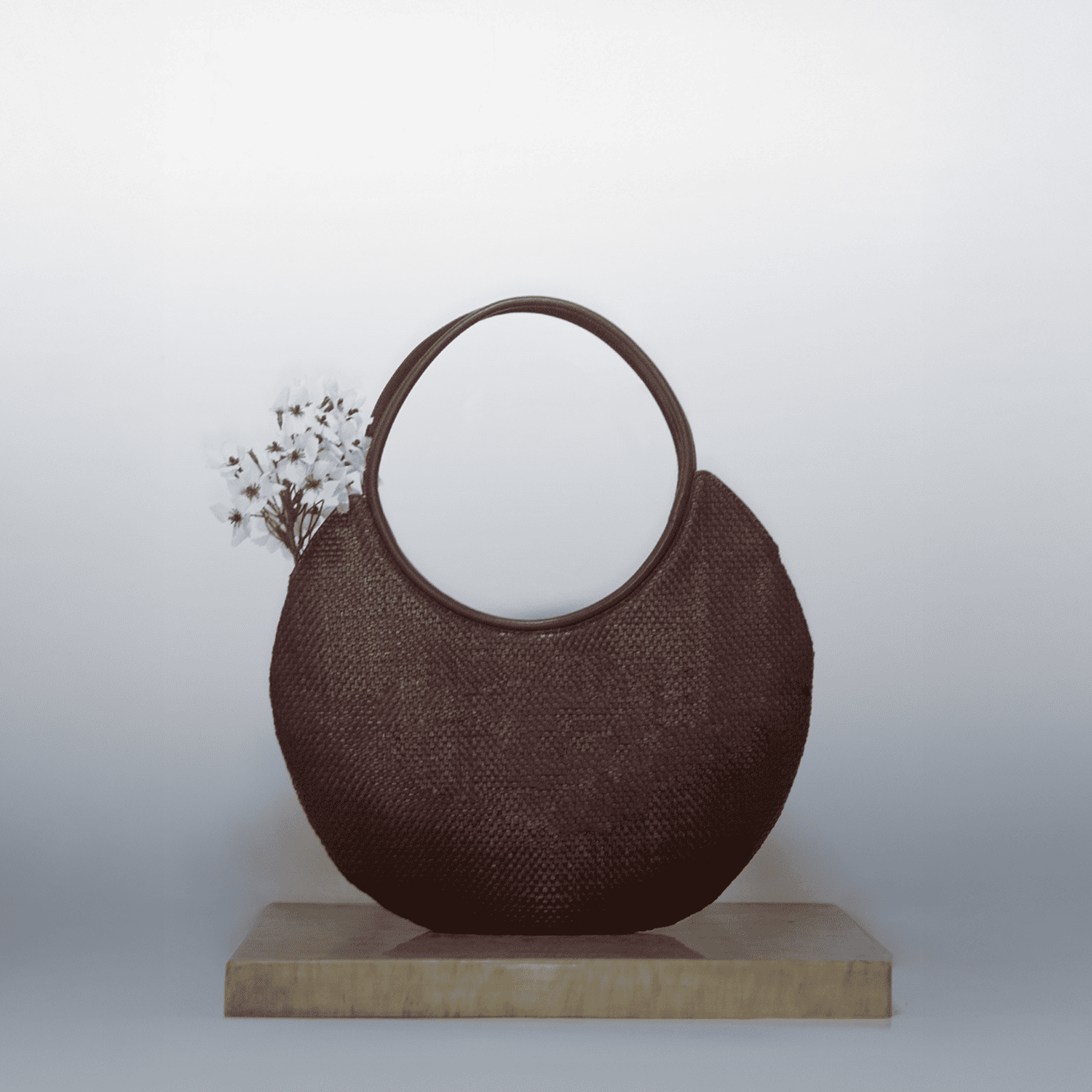 The Celis L in Chocolate Burgundy celebrates form and craftsmanship through its round silhouette and smooth woven texture. A graceful accent that elevates both casual and elegant looks.