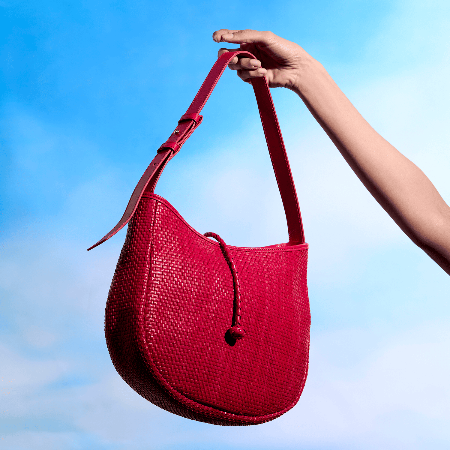 The drift is a playful bucket bag in a striking carmine shade. Compact yet eye -catching, it combines a relaxed a silhouette with everyday utility. Whether styled casually or dressed up, it adds a bold pop of color and character to your ensemble.