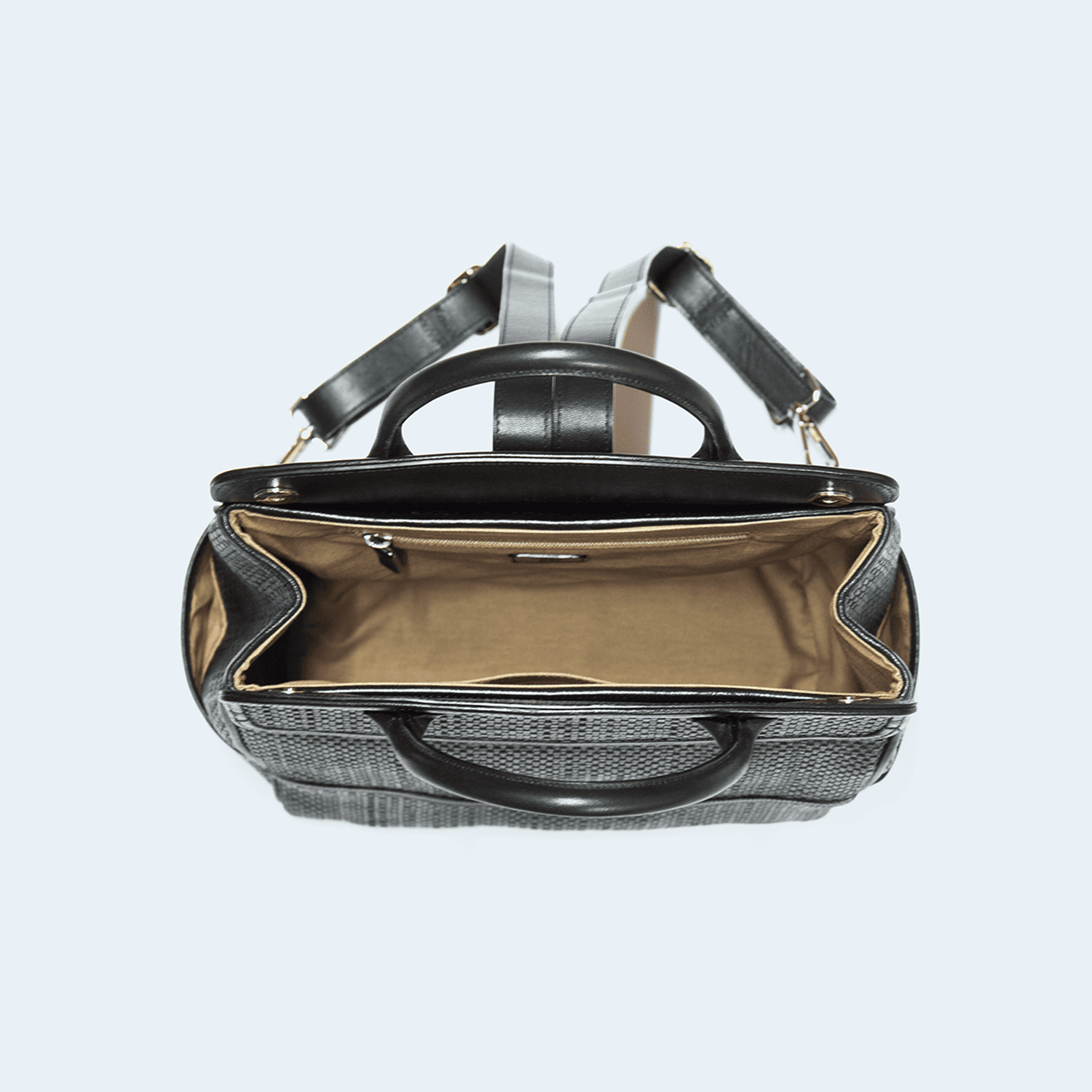 Classic and confident, the Elara L in Black is crafted with intricate leather weaving and a sleek silhouette. Perfect for those who appreciate refined craftsmanship and modern functionality.