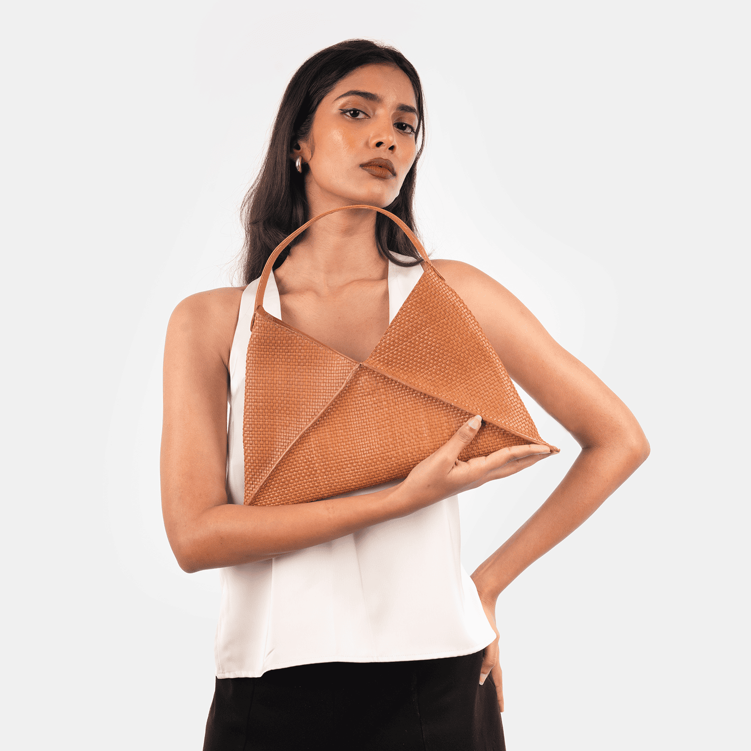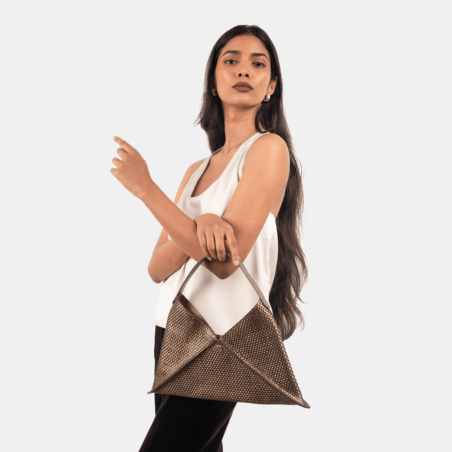 The Havana M redefines geometry with its folded triangular form. Effortlessly bold yet wearable, it’s a sculptural piece that stands out through artisanal detailing.