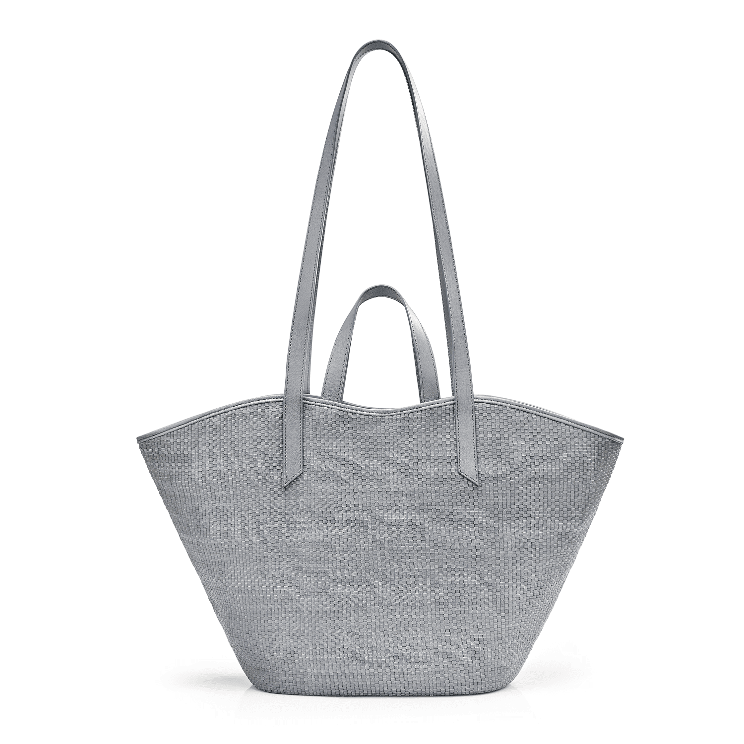 The vista tote in future grey is a spacious carry-all with a bold, sculptural silhouette. Designed for versatility, it balances everyday function with modern elegance, making it ideal for work, travel, or shopping.