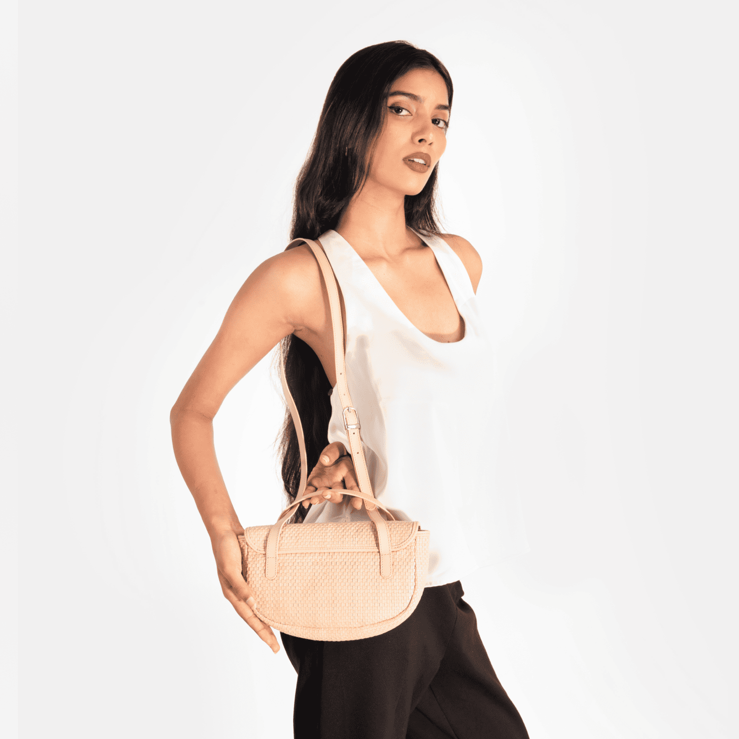 A refined crossbody with a minimalist arc silhouette. The Ziv Mini’s compact form and intricate weave make it a versatile piece that elevates every look.